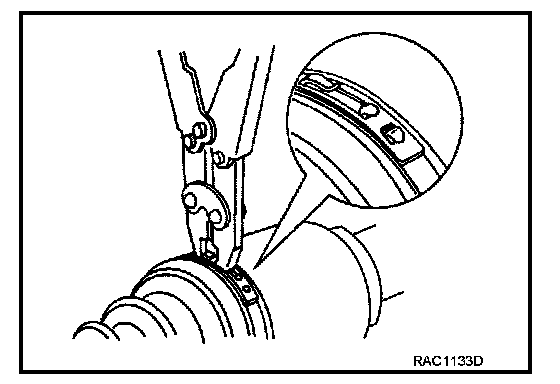 9. Secure joint sub-assembly and shaft, and then make sure that they are in the correct position when rotating boot. Install them with new boot band when boot installation positions become incorrect.