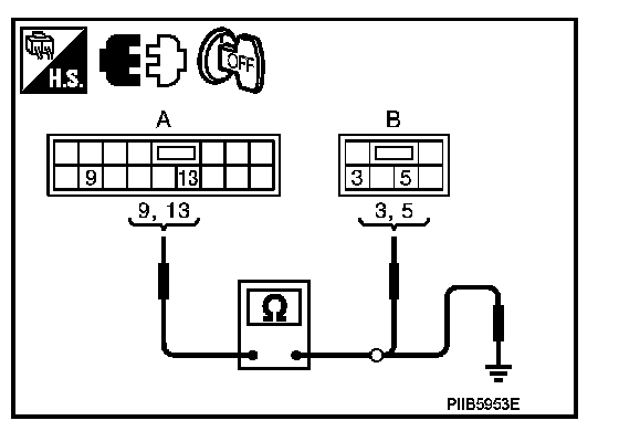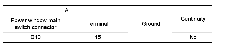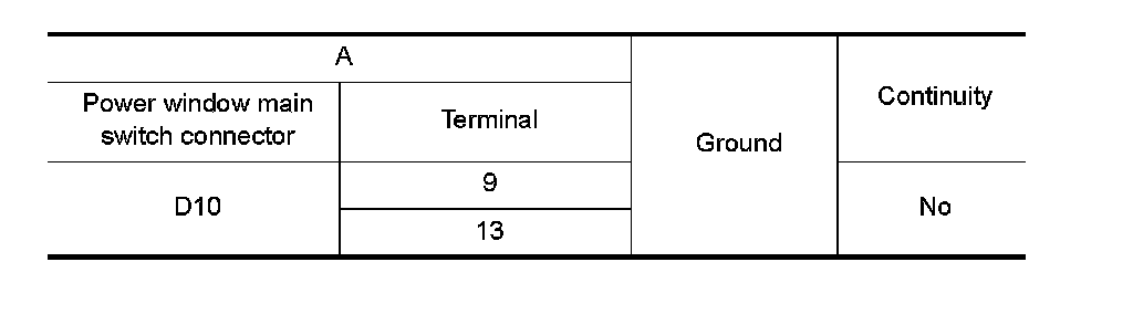 4. Check continuity between power window main switch connector and ground.