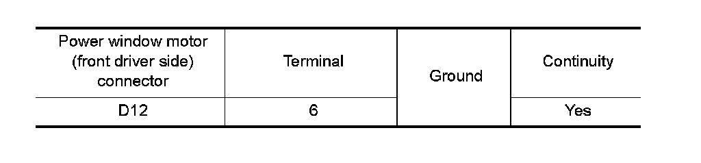 3. Check continuity between power window motor (front driver side) connector and ground.