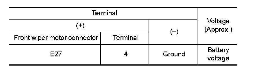 3. Check voltage between front wiper motor harness connector and ground.