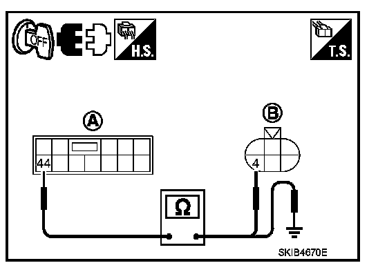 4. Check continuity between IPDM E/R harness connector (A) and