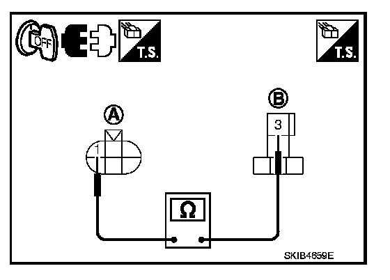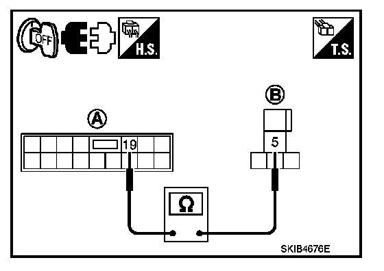 2. Check continuity between IPDM E/R harness connector (A) and front wiper motor harness connector (B).