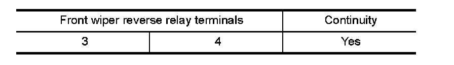 2. Check continuity between front wiper reverse relay terminals.