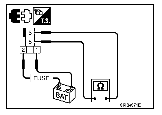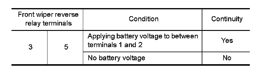 1. Check continuity between front wiper reverse relay terminals.