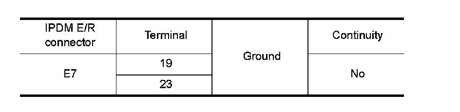 4. Check continuity between IPDM E/R harness connector and ground.