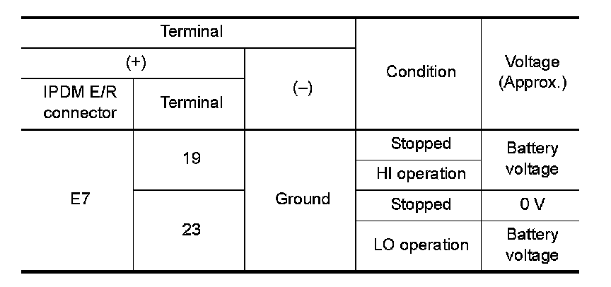 4. With operating the test item, check voltage between IPDM E/R harness connector and ground.