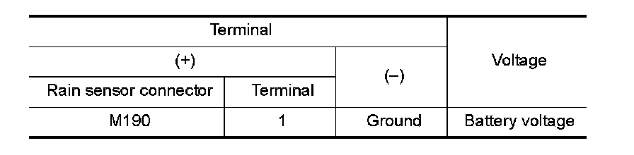4. Check voltage between rain sensor harness connector and ground.