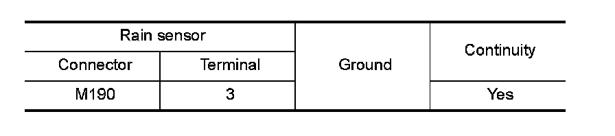 2. Check continuity between rain sensor harness connector and ground.