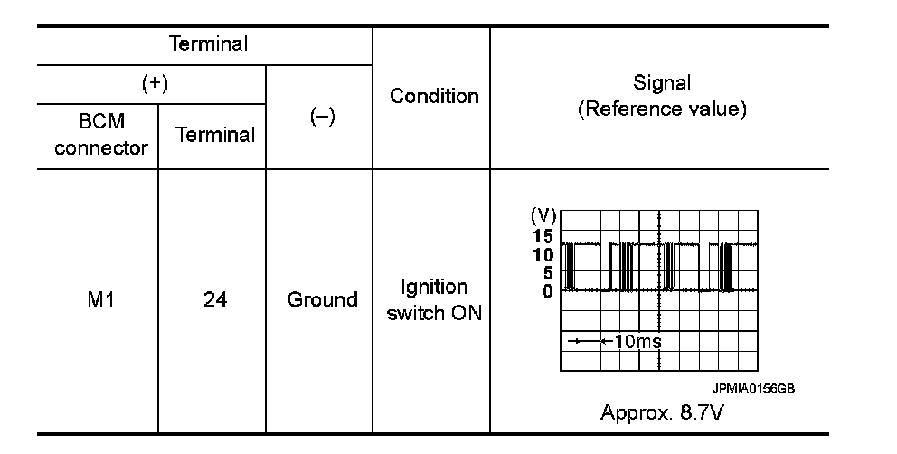 3. Check signal between BCM harness connector and ground with oscilloscope.