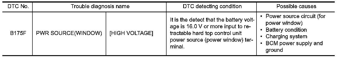 Retractable hard top control unit watches power supply condition of power supply (power window) terminal.