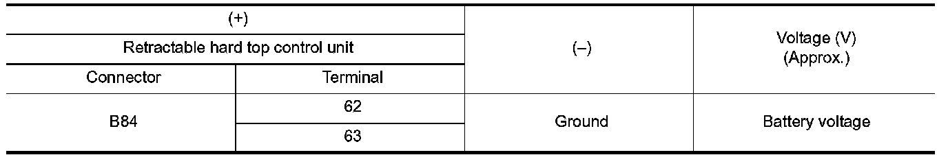 4. Check voltage between retractable hard top control unit harness connector and ground.