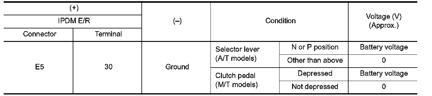 4. Check voltage between IPDM E/R harness connector and ground.