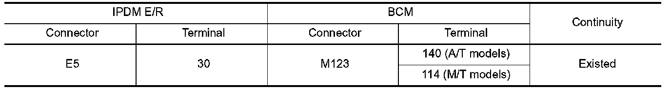 2. Check continuity between IPDM E/R harness connector and BCM harness connector.