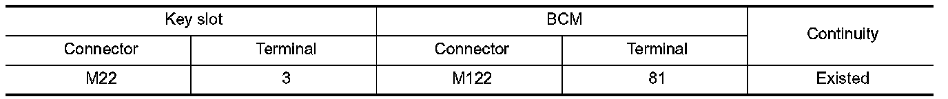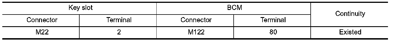 2. Check continuity between key slot harness connector and BCM harness connector.