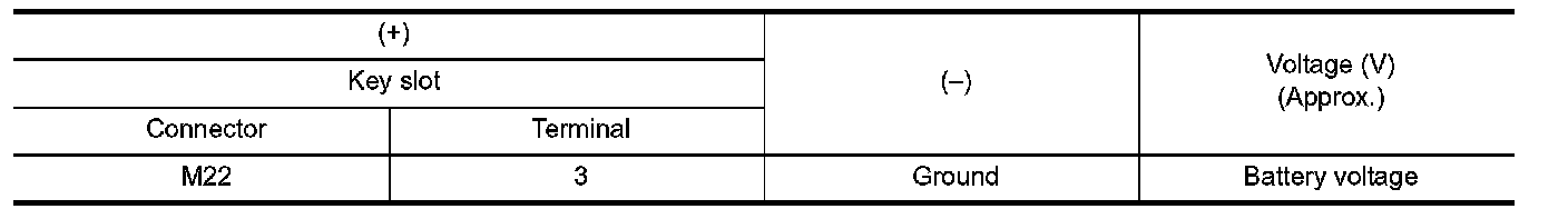 3. Check voltage between key slot harness connector and ground.