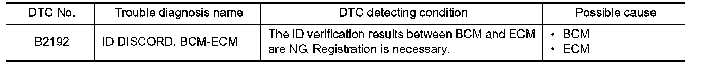 - If DTC B2192 is displayed with DTC U1000, first perform the trouble diagnosis for DTC U1000. BCS.