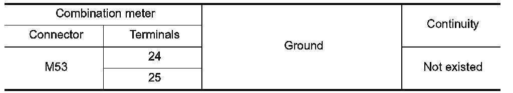 4. Check continuity between combination meter harness connector terminal and ground.