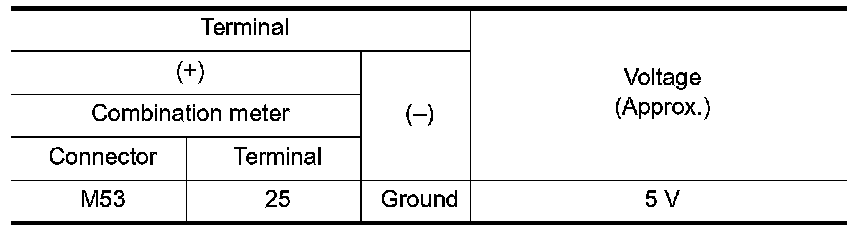 5. Check voltage between combination meter harness connector terminal and ground.