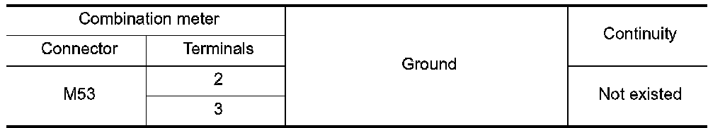 4. Check continuity between combination meter harness connector terminal and ground.
