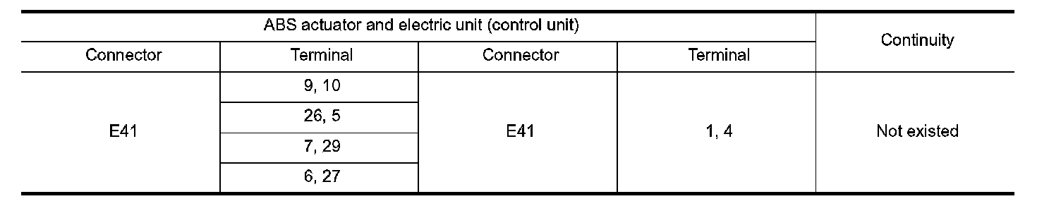 2. Check the continuity between ABS actuator and electric unit (control unit) harness connector.