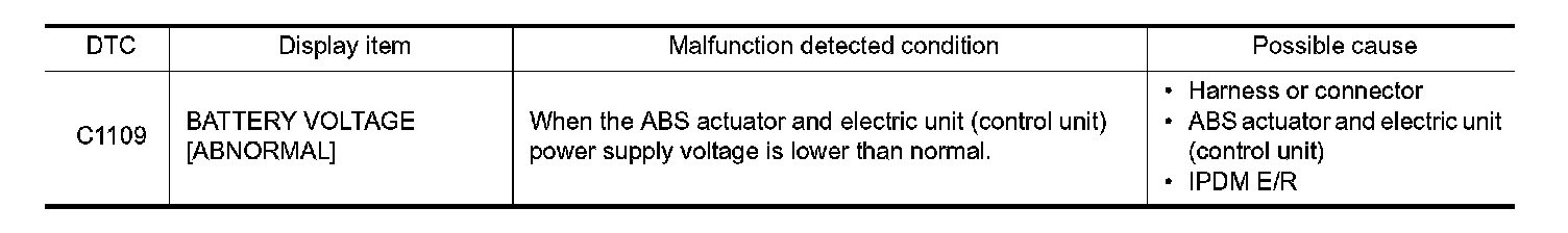 Is DTC "C1109" detected?
