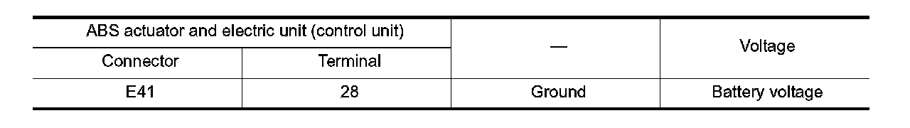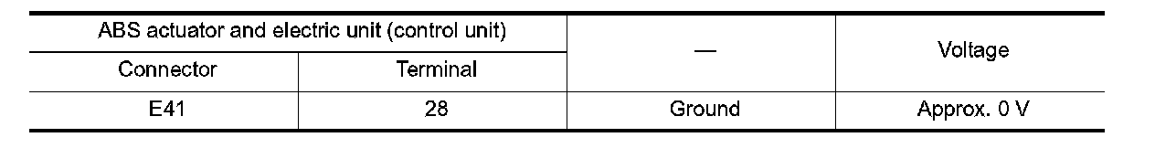 3. Check the voltage between ABS actuator and electric unit (control unit) harness connector and ground.