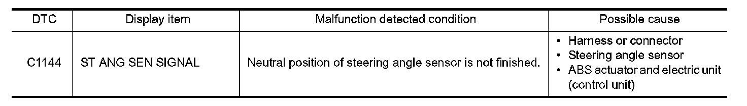 C1144 INCOMPLETE STEERING ANGLE SENSOR ADJUSTMENT