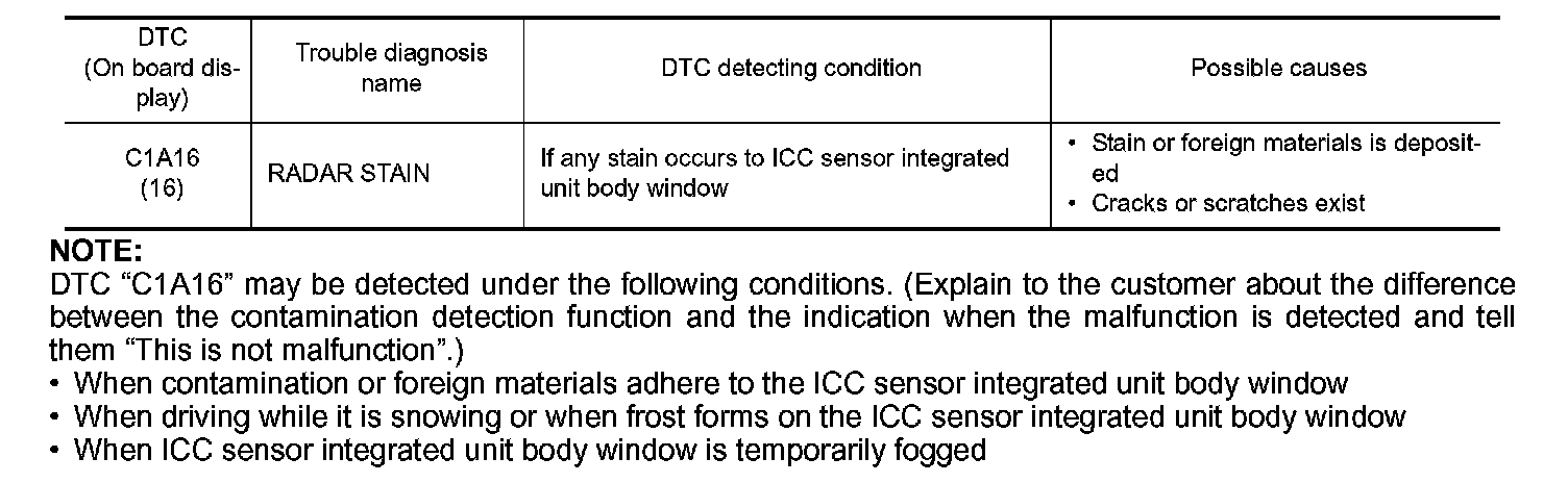 2. Ask if ICC sensor integrated unit body window was frosted during driving or if vehicle was driven in snow.