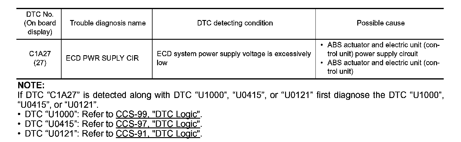 Check if "U1000", "U0415" or "U0121" is detected other than "C1A27" in "Self Diagnostic Result" of "ICC".