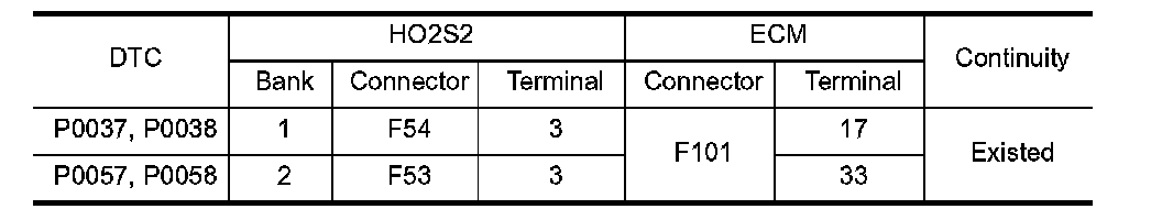 P0037, P0038, P0057, P0058 HO2S2 HEATER