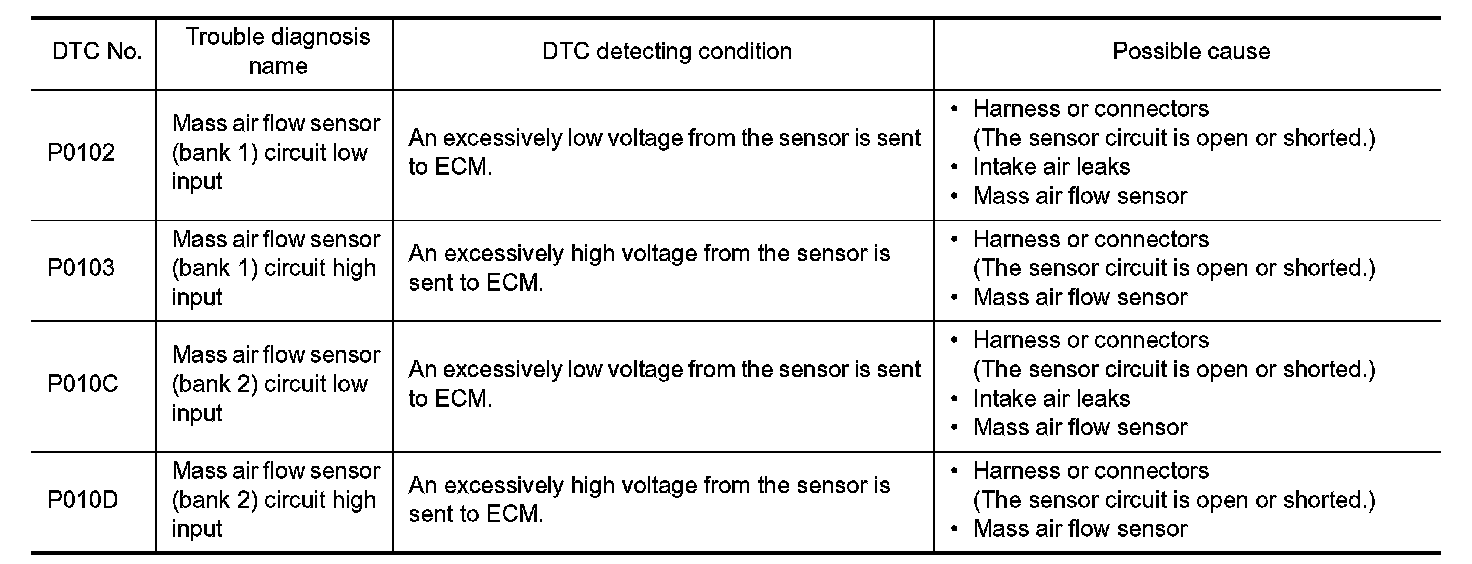 - Harness for open or short between mass air flow sensor and IPDM E/R