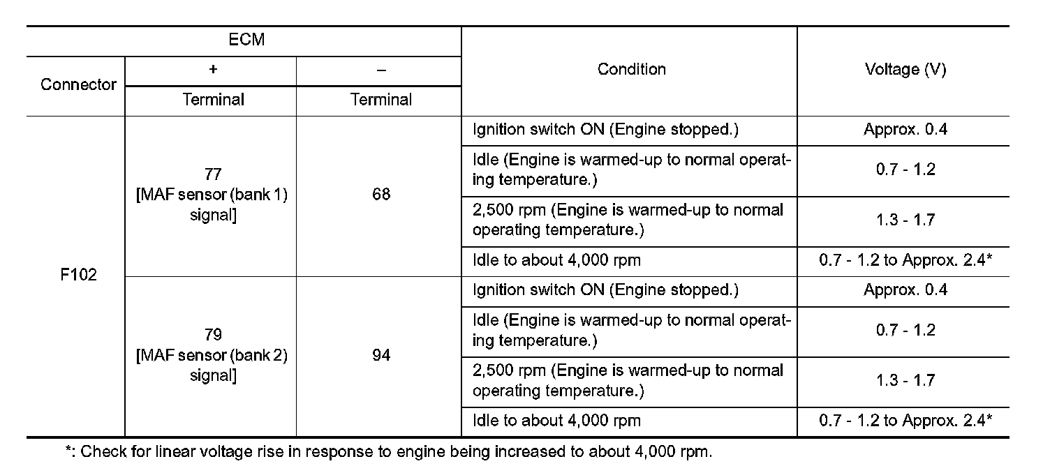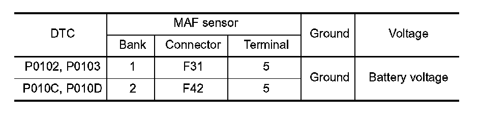 3. Check the voltage between MAF sensor harness connector and ground.