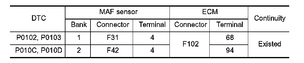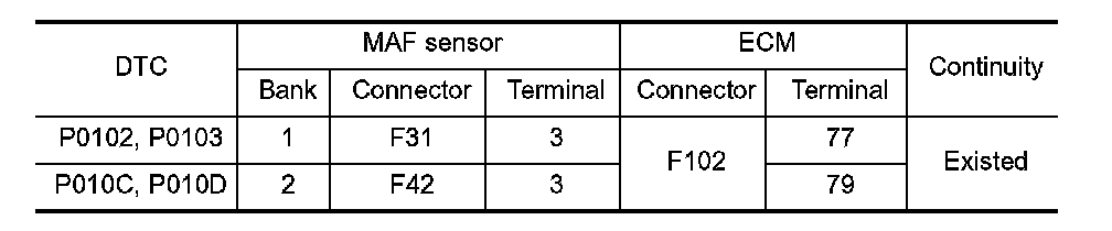 1. Check the continuity between MAF sensor harness connector and ECM harness connector.