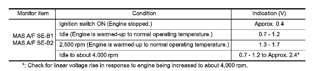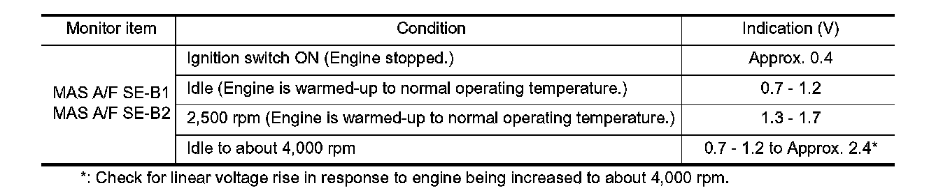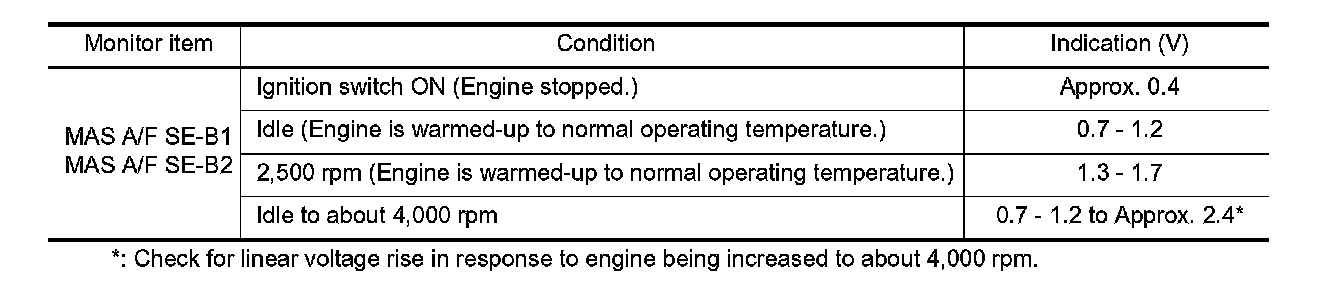 5. Select "MAS A/F SE-B1" and "MAS A/F SE-B2", and check the indication.