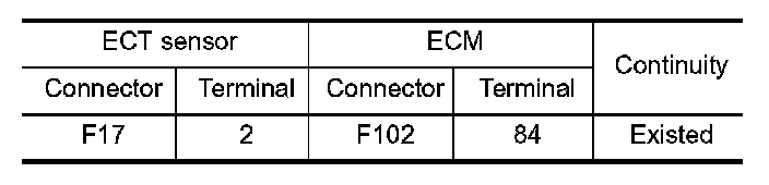 3. Check the continuity between ECT sensor harness connector and ECM harness connector.