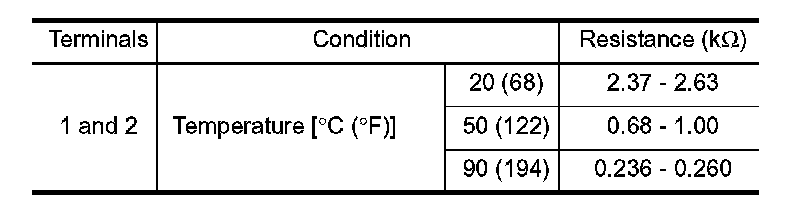 The engine coolant temperature sensor is used to detect the engine coolant temperature. The sensor modifies a voltage signal from the ECM. The modified signal returns to the ECM as the engine coolant temperature input. The sensor uses a thermistor which is sensitive to the change in temperature. The electrical resistance of the thermistor decreases as temperature increases.