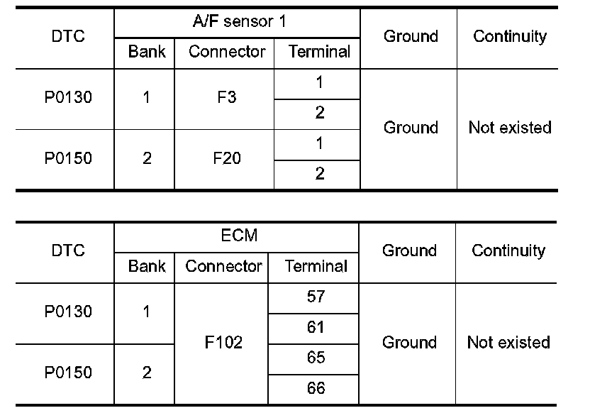 P0132, P0152 A/F SENSOR 1