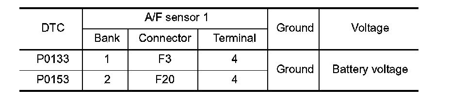 3. Check the voltage between A/F sensor 1 harness connector and ground.