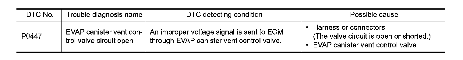 - Harness for open or short between EVAP canister vent control valve and IPDM E/R