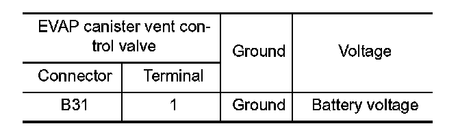 4. Check the voltage between EVAP canister vent control valve harness connector and ground.