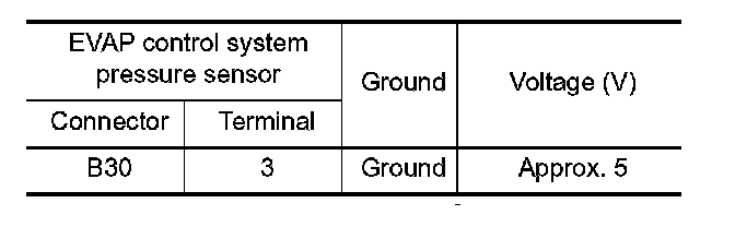 2. Check the voltage between EVAP control system pressure sensor harness connector and ground.