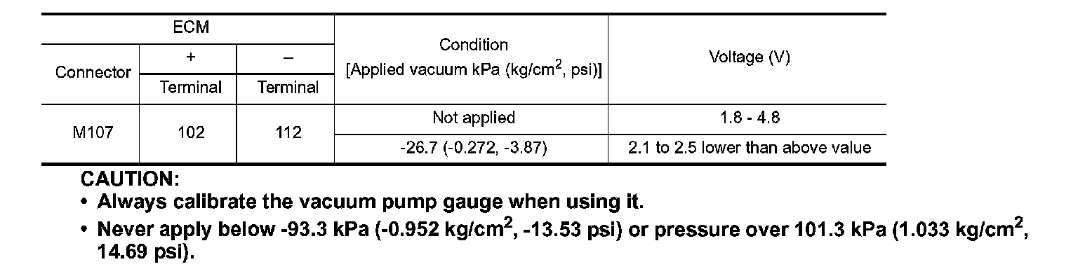 4. Turn ignition switch ON and check output voltage between ECM harness connector terminals under the following conditions.