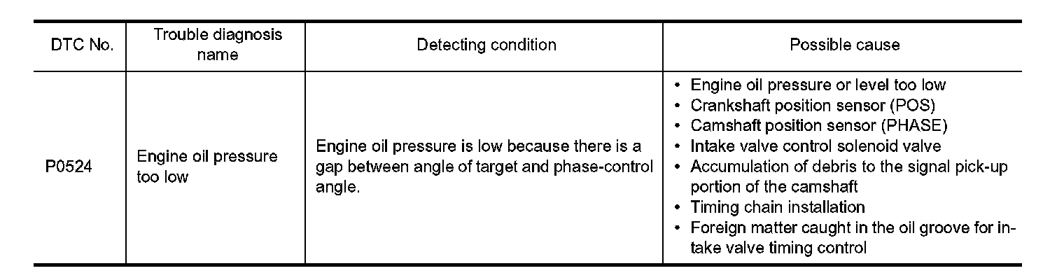 If DTC P0524 is displayed with DTC P0075 or P0081, first perform the trouble diagnosis for DTC P0075, P0081. P0075