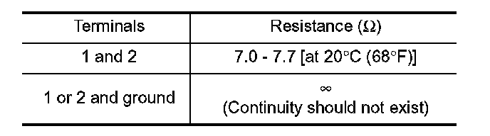 3. Check resistance between intake valve timing control solenoid valve terminals as per the following.