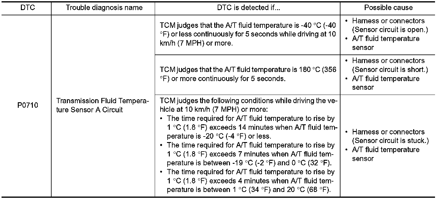 P0710 TRANSMISSION FLUID TEMPERATURE SENSOR A