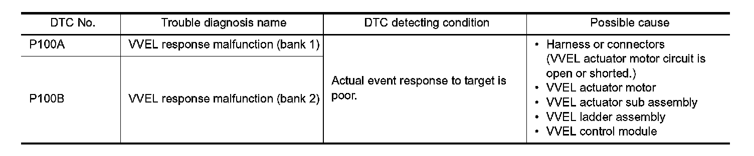 - Harness for open or short between VVEL actuator motor and VVEL control module