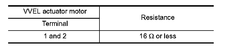 3. Check resistance between VVEL actuator motor terminals as follows.