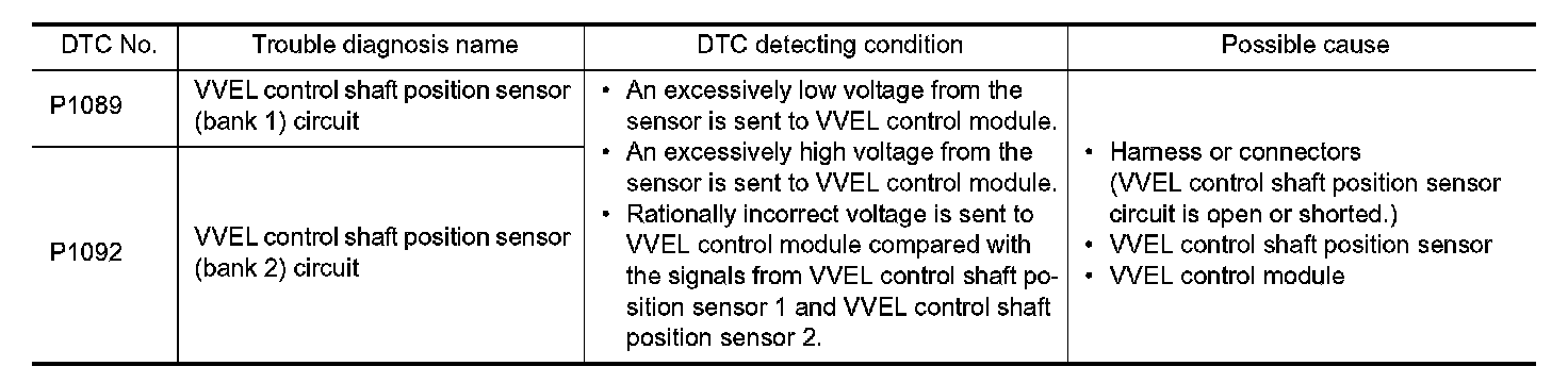 P1089, P1092 VVEL CONTROL SHAFT POSITION SENSOR