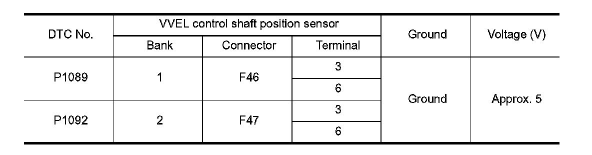 6.VVEL CONTROL SHAFT POSITION SENSOR INPUT SIGNAL CIRCUIT FOR OPEN AND SHORT