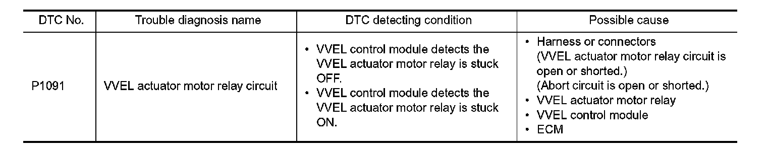 Power supply for the VVEL actuator motor is provided to the VVEL control module via VVEL actuator motor relay. VVEL actuator motor relay is ON/OFF controlled by the VVEL control module. In addition, when the